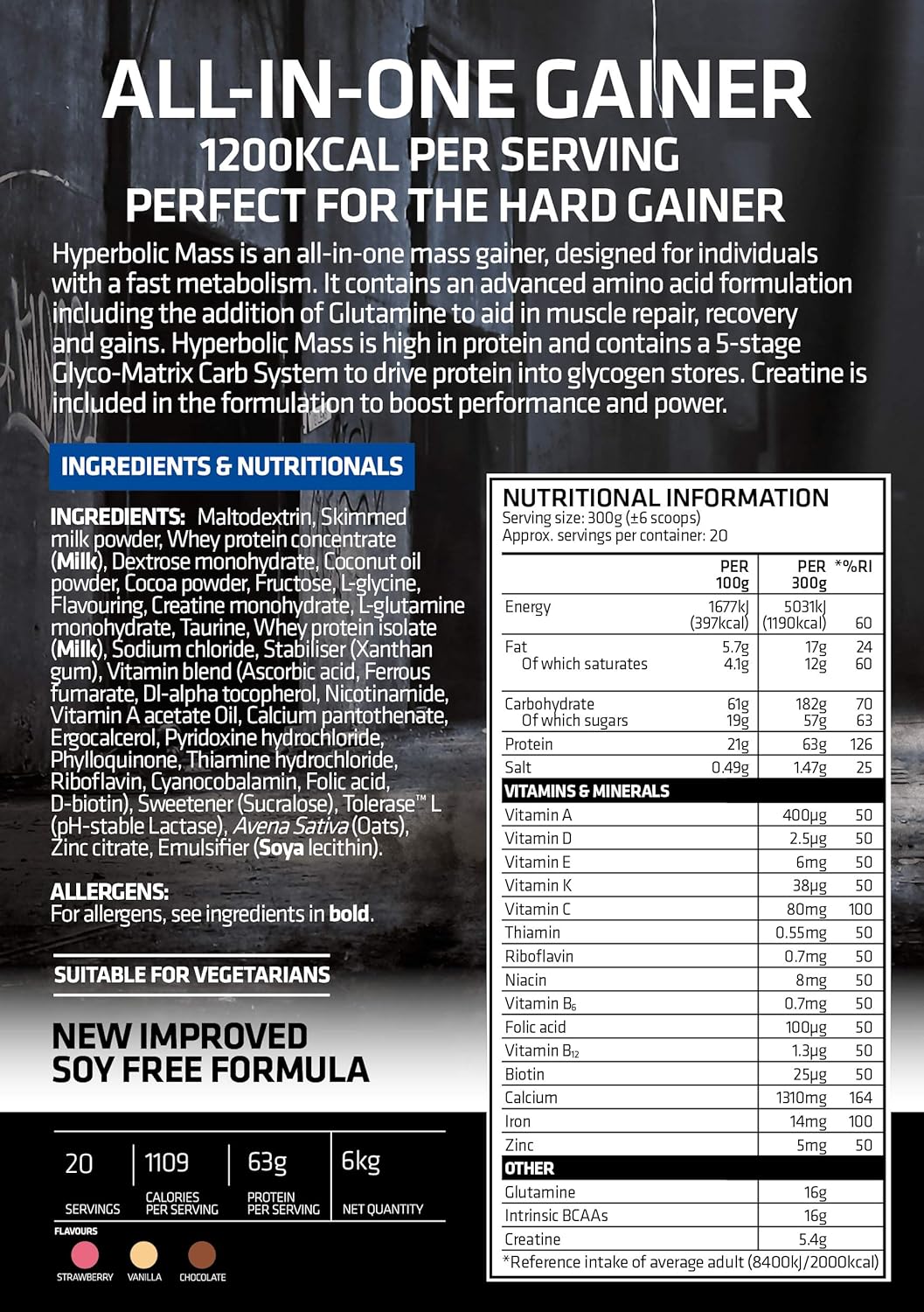 Επιπλέον, το USN Ηyperbolic Mass παρέχει και μια μεγάλη αναλογία ωφέλιμων θρεπτικών συστατικών για τη μυϊκή ανάπτυξη όπως β-Αλανίνη και HMB καθώς και την παραγωγή τεστοστερόνης από τον οργανισμό με την κρεατίνη.